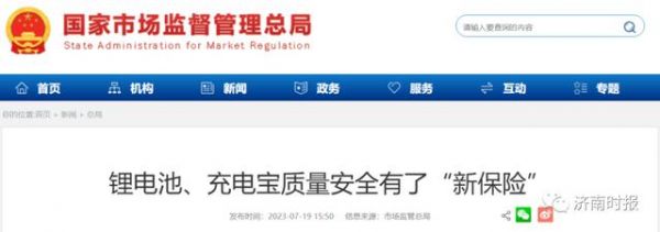 为了加强对锂电池、充电宝等产品的质量安全监管,2022年9月国务院办公厅印发《关于深化电子电器行业管理制度改革的意见》,明确要求将安全风险较高的锂电池、移动电源纳入强制性产品认证管理。