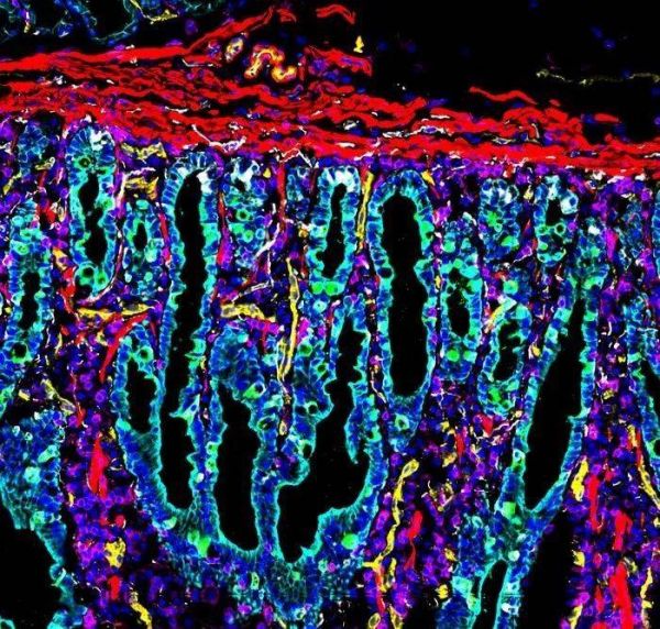 ▲人类肠道中的细胞,每种颜色对应一种特定分子,标记一种细胞类型或结构(图片来源:参考资料[7];Credit:Stanford Medicine/Snyder lab/Nolan lab/Greenleaf lab)
