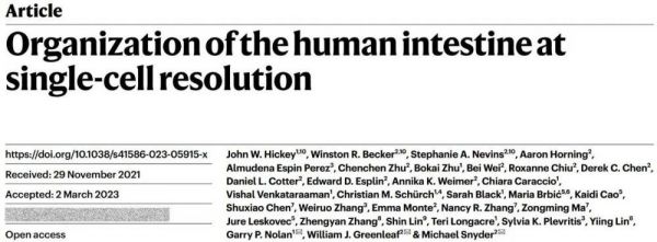 [1] John W. Hickey et al., (2023) Organization of the human intestine at single-cell resolution. Nature. Doi: 10.1038/s41586-023-05915-x