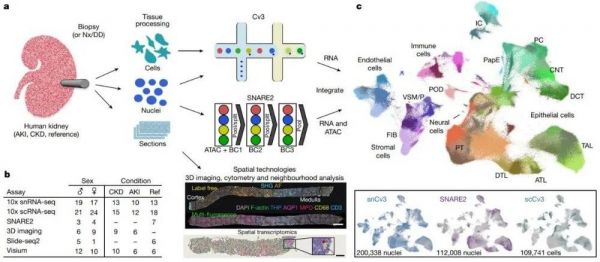 研究人员指出,过去急性肾损伤和慢性肾病常被认为是单一的疾病,通过这份肾脏细胞图谱,能够更好地识别不同根源的疾病亚群,为将来的个体化疗法提供基础。
