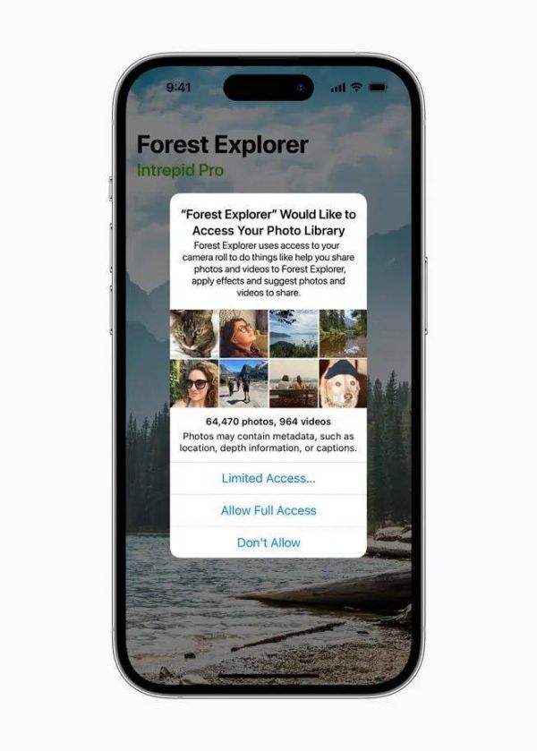 当你用app选取照片时,手机会询问你app是否可以访问你的照片。|Apple
