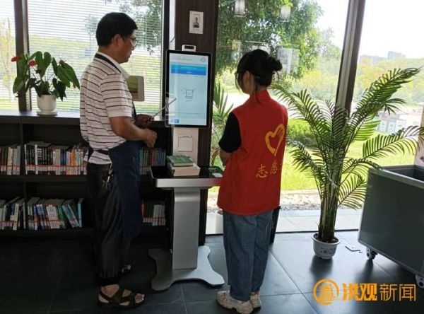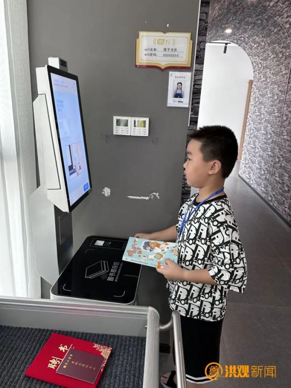 小读者正在自助借书在南昌经开区孺子书房·金牛社区分馆的入口处,竖立着一台自助借还办证一体机。读者温昊瑜在馆内挑选了4本图书,用社保卡在自助借还办证一体机上办理了借阅证,随后,她在电子证扫描区刷一下读者证二维码,再根据提示将所借的图书放到感应区,只用1分钟便完成了4本书的借阅。