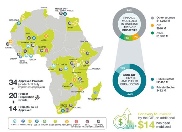 非洲开发银行实施的气候投资基金(CIF)项目分布,来源:非洲开发银行