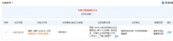 据了解,品牌的主体公司于2020年至2021年因通过个人银行账户、个人微信、支付宝取得快手、抖音平台销售货物收入和带货佣金约 2713 万元,未进行纳税申报的行为构成偷税,被处以罚款 149.78 万。