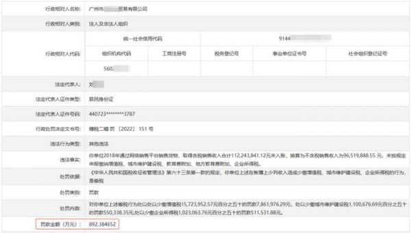 2022年10月,广州市某贸易有限公司通过网络销售,取得含税销售收入合计 1.12 亿元,但未按规定缴纳税款,最终相关部门对其处以 892.38 万元的高额罚金。
