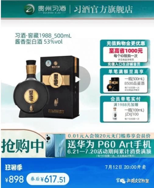 据业内人士透露,像习酒窖藏1988,出厂价是568元,建议零售价是898元,但其网上官方旗舰店跌到过600多元,经销商给到终端已经低于出厂价,只要490元。