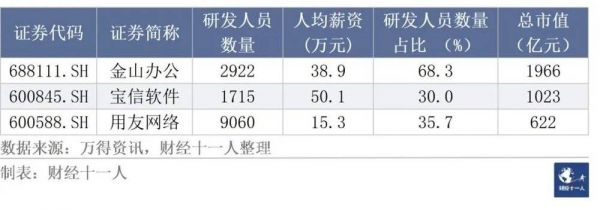 表4:A股市值最高的三家云服务公司研发人员年收入情况