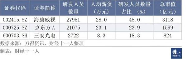 表2:A股市值最高的三家光电公司研发人员年收入情况