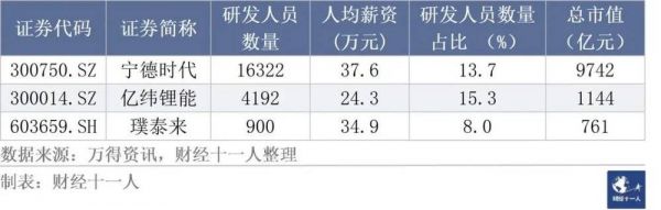 表5:A股市值最高的三家新能源动力系统公司研发人员年收入情况