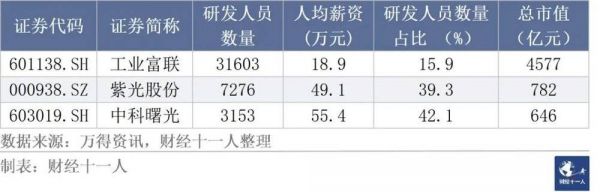 表6:A股市值最高的三家计算机设备公司研发人员年收入情况