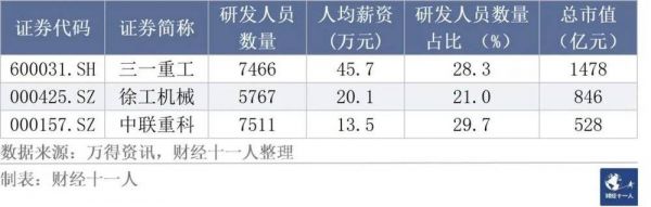 表7:A股市值最高的三家工程机械公司研发人员年收入情况