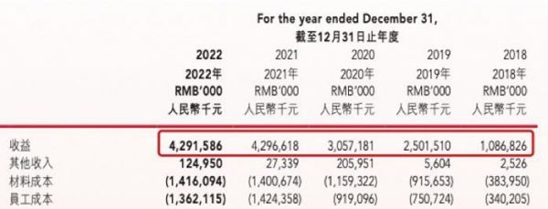 据奈雪2022年财报显示,奈雪从2018年到2022年为止,五年时间内的营收分别是10.87亿、25.01亿、30.57亿、42.97亿、42.96亿。