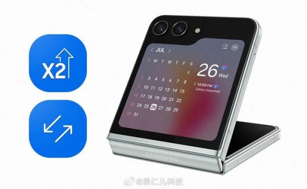 三星 Galaxy Z Flip5 手机宣传图曝光:外屏 3.4 英寸、内屏 6.7 英寸。