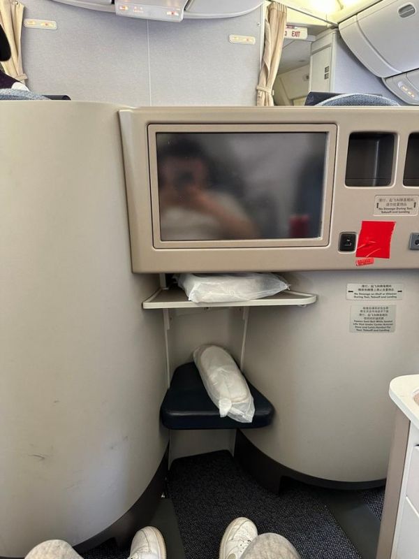 第一次飞洲际公务舱,结果还遇到一个坏的屏幕[允悲]波音777的公务舱确实老了点,不过也还行,坐着没问题。遇到一位带小朋友,要换座位好连在一起的女士,那必须得帮个忙给换一下。[doge]舍弃了我的中间过道宝座。