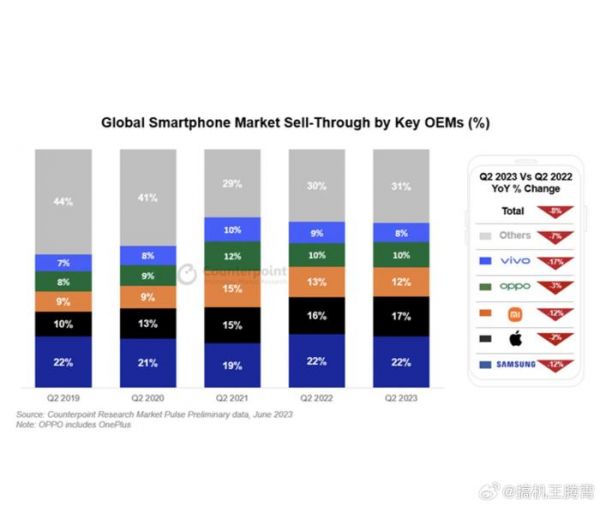 2023Q2全球智能手机市场销量八连跌!高端市场成唯一亮点