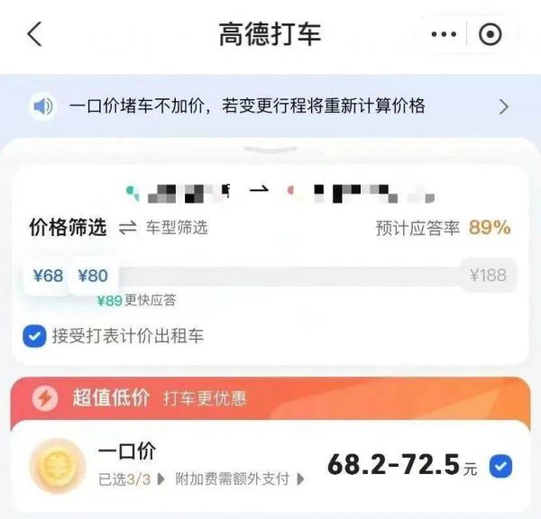 一口价,以特惠形式推出,是网约车平台用低价争夺客源的手段。