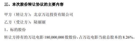 摘自7月12日《万达电影股份有限公司关于控股股东协议转让部分股份暨权益变动的提示性公告》