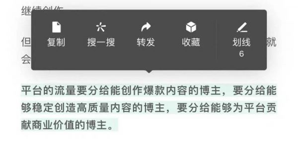 目前的功能只有划线、转发和收藏版块。一些网友表示以前都是在评论区发表自己对某段话的看法,这样做极为不方便,现在可以划线表示赞同但产生不了多大的互动价值,缺少对划线的评论。