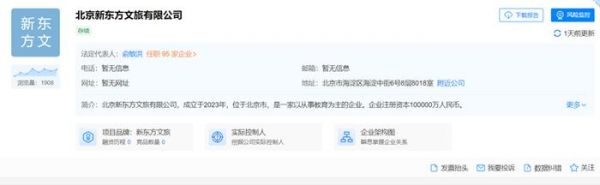 目前已经落地的是,新东方首条文旅线路,俞你同行·东坡溯源之旅。公司主体为浙江俞你同行旅行社有限公司,由北京世纪友好教育投资机构有限公司间接全资持股。后者由俞敏洪持股99%。