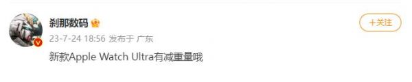 IT之家 7 月 24 日消息,据微博博主 @刹那数码 透露,苹果公司计划今年推出的新款 Apple Watch Ultra 智能手表将比现款更轻。该博主曾准确预测了苹果公司在今年春季推出黄色 iPhone 14 和 iPhone 14 Plus。