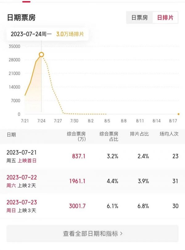 其中《芭比》前两天票房占比都高于排片占比,所以它排片一直在涨。