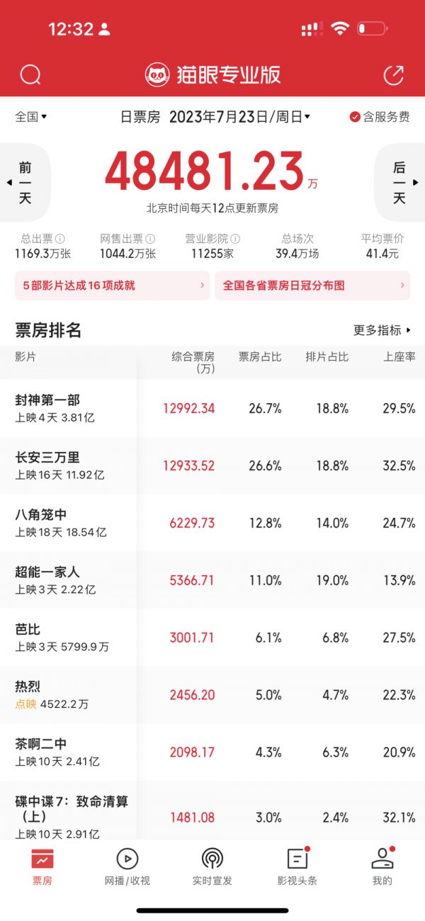 于是我就看了下昨天的电影票房: