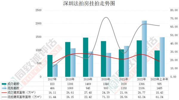 值得一提的是,法拍市场有房源高溢价成交并非普遍现象。根据深圳同致诚评估数据研究中心数据显示,2023年深圳法拍共挂出2470套房源,成交985套,流拍60.12%,流拍率仍处于高位水平。