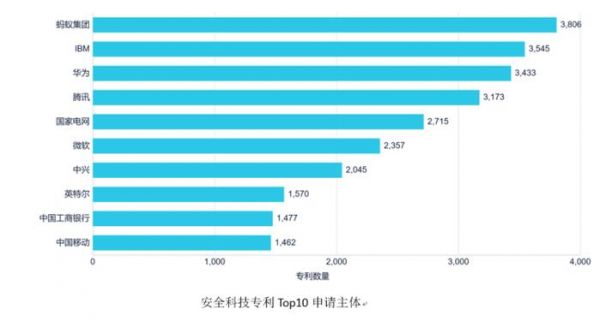全球安全科技专利数排行发布,蚂蚁、IBM、华为位列前三