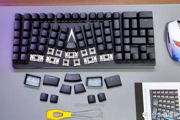 这几张实物照片是后面正式发布的X-Bows,与工程样机相比,键帽材质更好,细节调整到位,附赠硅胶腕托,驱动更好用了,改键自由度相当高,甚至可以考虑将右侧功能键魔改为小数字键盘区。