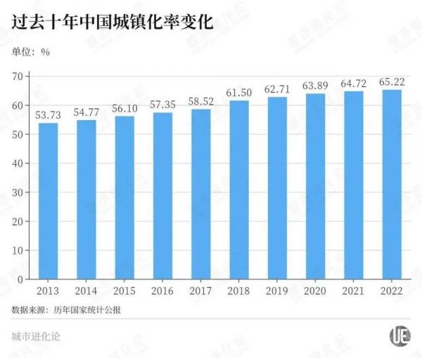 目前,我国常住人口城镇化率为65.22%,按照每年1%左右的速度来看,未来5~6年时间,或将触及70%的天花板。