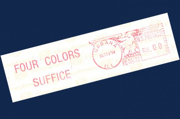 图3:在四色定理证明发表后的许多年里,伊利诺伊大学厄巴纳-香槟分校数学系在外发邮件上都盖上了“四色足够”的邮戳。丨图源:las.illinois.edu