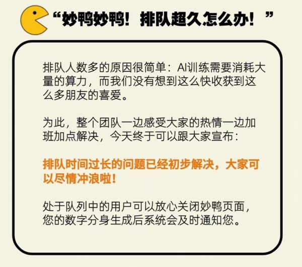 随后,妙鸭也坦承算力不足的问题。