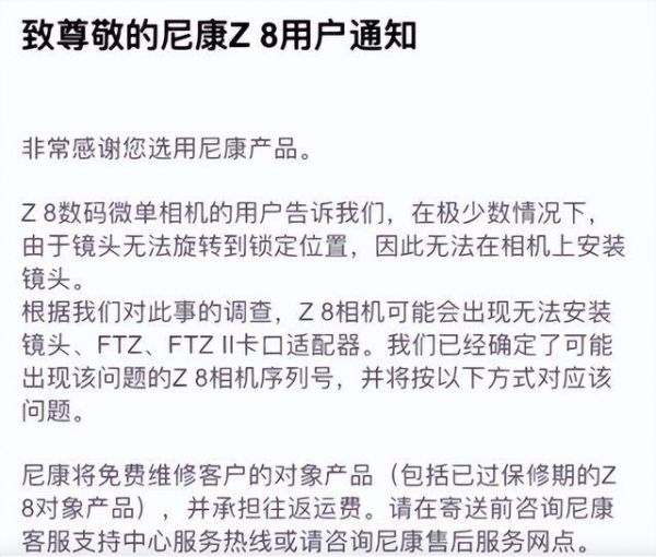 2.卡口无法紧密安装镜头,锁定不到位。这个问题虽然可大可小,但作为Z8这个级别的机身,不应该出现,尼康官方目前已经发出召回通告,已经把问题范围缩小到某个批次。