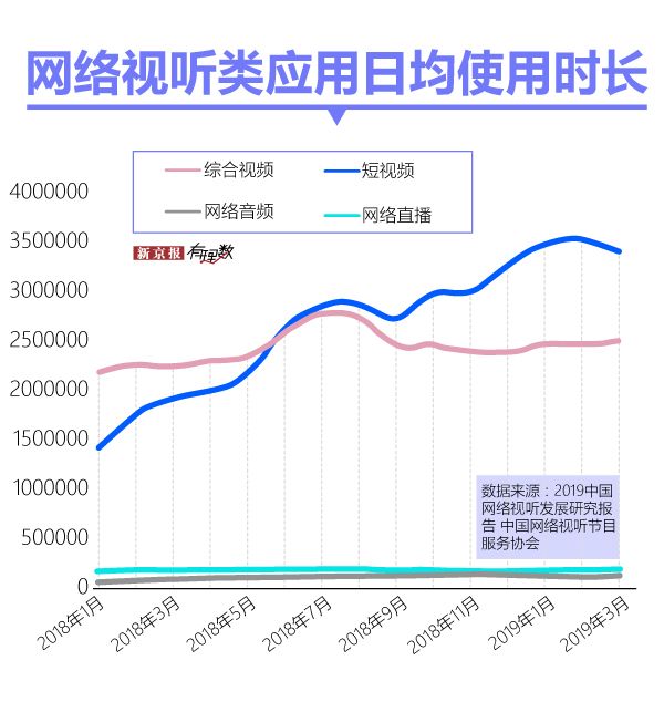 而在同一时间,短视频成为更具全民性的消遣,截至 2018 年 12 月,其用户规模已高达 6.48 亿。相关数据也显示,人们花在短视频上的时间,从一开始就远远超过直播。