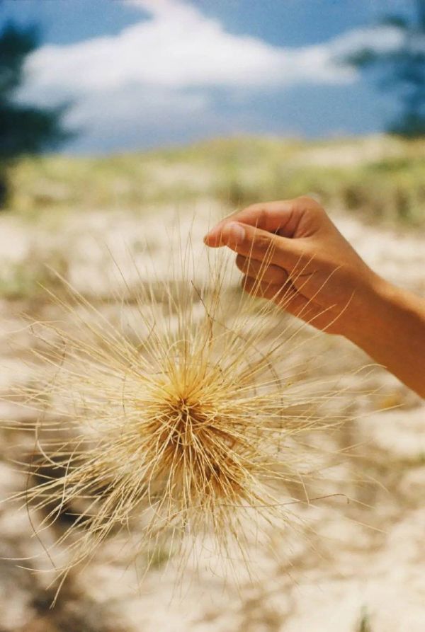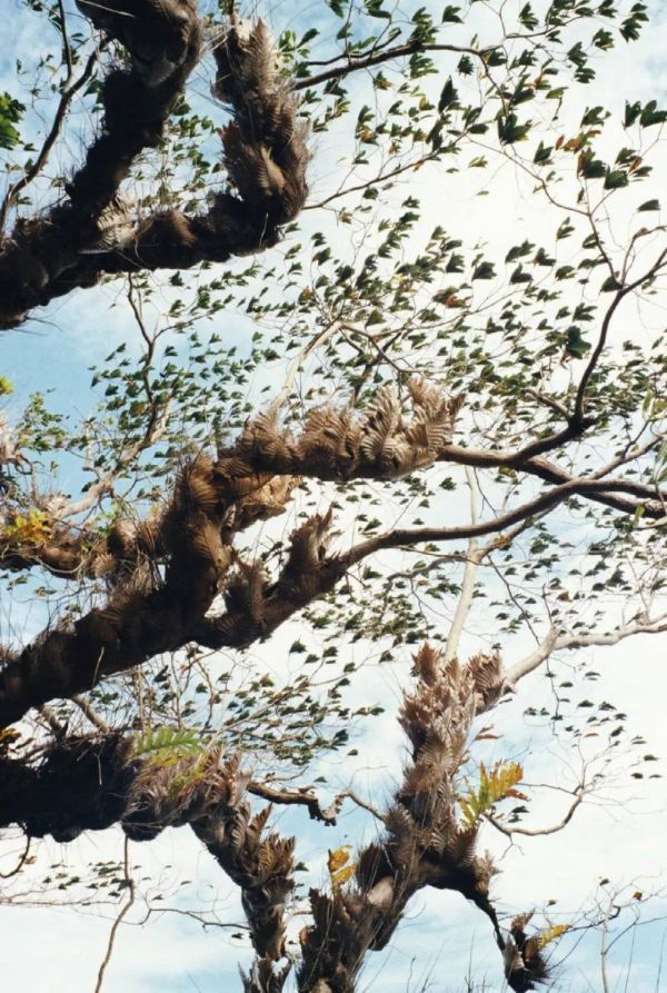 他手头拿的是胶片相机,拍那些热烈的、光照充足的南方海岛,更具体来说,是定格的海浪,脚边的木麻黄、曼陀罗叶上的金龟子、椎骨的路径、赤蝶的尸肉、被人类捕获的风滚草,穿得很少的少年……