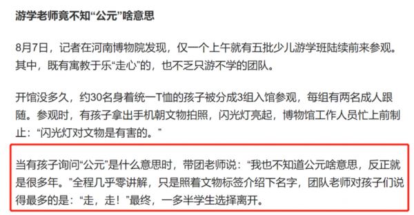就比如说,现在带研学团的“老师”,有的以前是带老年团的导游,有的则是从教育机构临时调过来的,甚至还有的连“公元”是什么意思都答不上来,只是因为觉得“小孩的钱好赚”,就投身到了这个新行业当中。