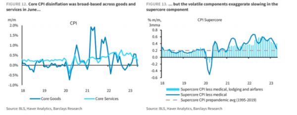巴克莱在报告中强调,6月通胀数据的意外下行,使得美联储在9月后再重启加息的必要性下降,但随着经济活动的恢复和劳动力市场的持续火热,美联储的通胀目标仍然需要时间来验证: