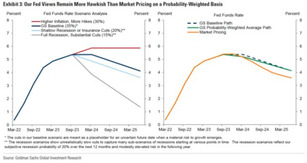 高盛同时给出了降息时间表,预计首次降息将在2024年第二季度,每季度将降息25个基点: