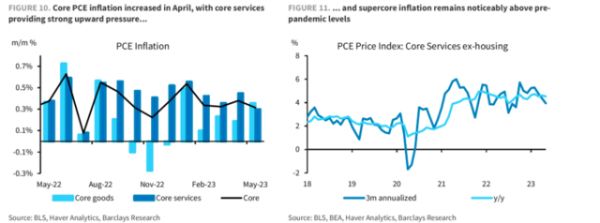 巴克莱强调,美联储此次的议息会议并不会掌握其最青睐的数据——6月核心PCE物价指数,预计6月PCE通胀也将放缓,但幅度较小,而经济活动更具弹性,劳动力市场趋紧,未来PCE增速也很难放缓: