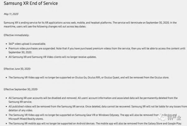 2020年5月11日,三星官宣将在2020年9月30日终止其XR应用服务,这一事件彻底为Gear VR宣判了死刑。