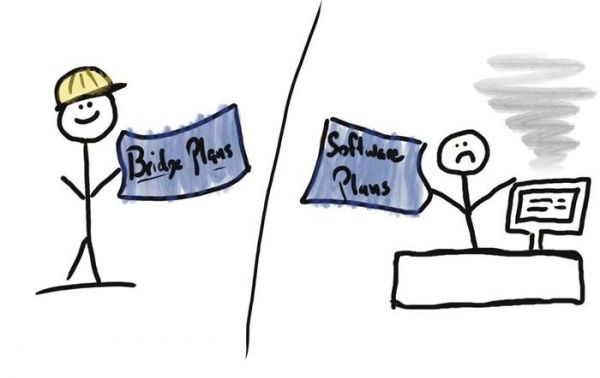 在其他工程领域,瀑布式的效果不错:如果你正在建造一座桥梁,我当然希望你在开始建造之前就有一份要求、测量、材料和结构计算的清单。