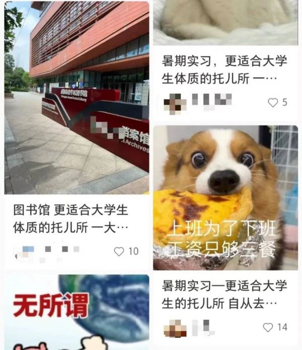 小红书上关于“大学生托儿所”的内容