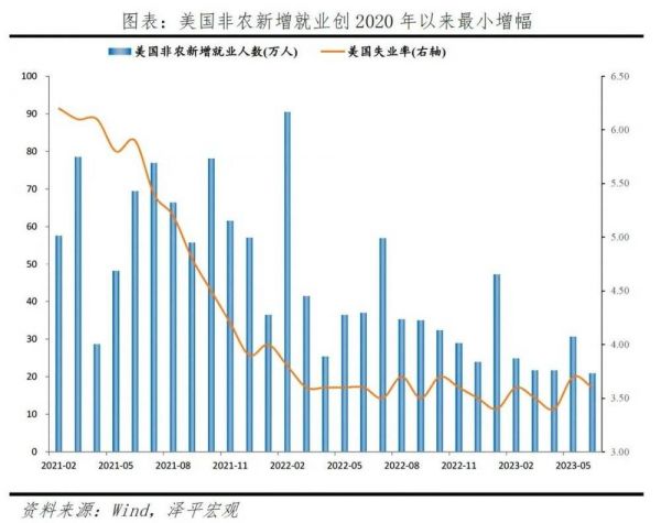美国劳动力市场韧性,但边际降温,新增就业人数下滑,职位空缺数收敛。美国6月非农新增就业人数20.9万人,大幅低于前值的33.9万人,为2020年12月以来最小增幅。