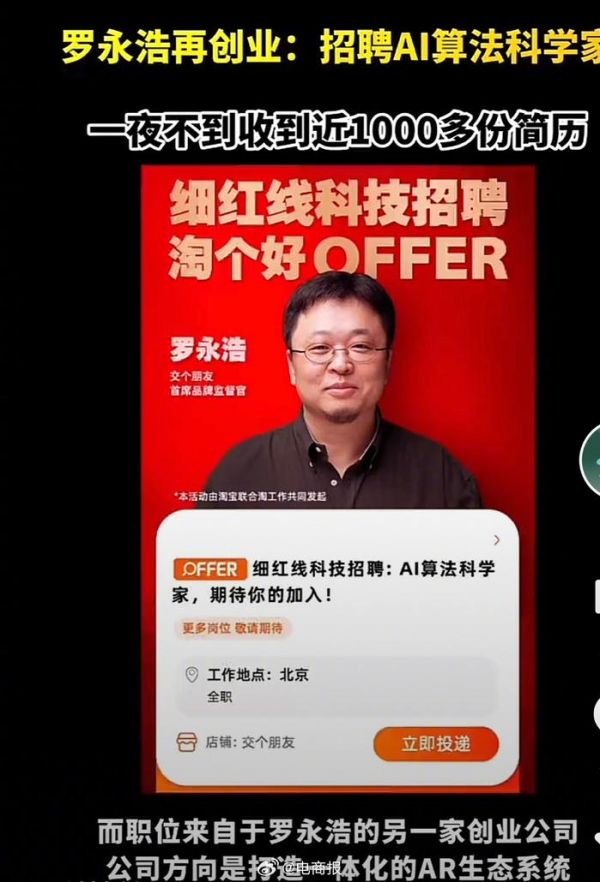 罗永浩直播间在线招算法科学家,一夜之间超千份简历竞争……