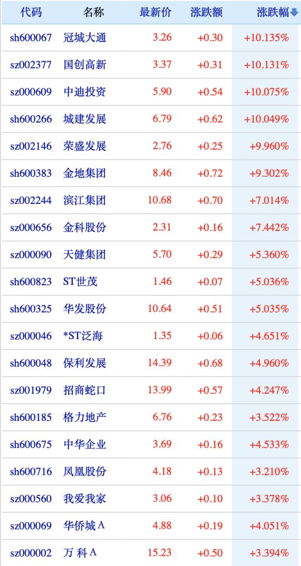 受此消息刺激,7月28日,房地产、建材、家居用品和家用电器板块红盘开盘。截至午盘,房地产板块几乎全线飘红。