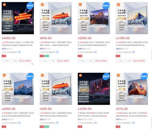 (图片来源:京东截图)可以看出,虽说小米已经是连续四年取得市场占有率第一,但也是四者中唯一一位同比下滑的厂商,海信和TCL则是凭借极快的产品迭代速度和较高的性价比抢走了部分小米的市场份额。