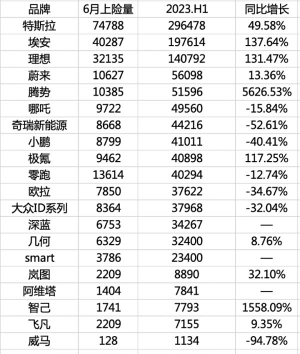 以这个标准来看,这些品牌按规模基本分三个档位,第一梯队是半年30万辆左右,满足的车企只有特斯拉,半年总上险量29.6万辆,同比增长了49.58%。