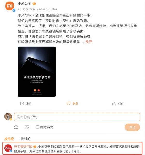 今天上午,小米MIX Fold3正式官宣定档8月发布,亮相时机耐人寻味,毕竟三星昨晚才发布Galaxy Z Fold5折叠屏手机。不仅时间上有巧合,小米还宣布新机主打“轻薄全能”体验,不会为了轻薄而阉割硬件堆料,全焦段徕卡四摄开启移动光学影像“新范式”,直接把对手衬托的黯然失色。