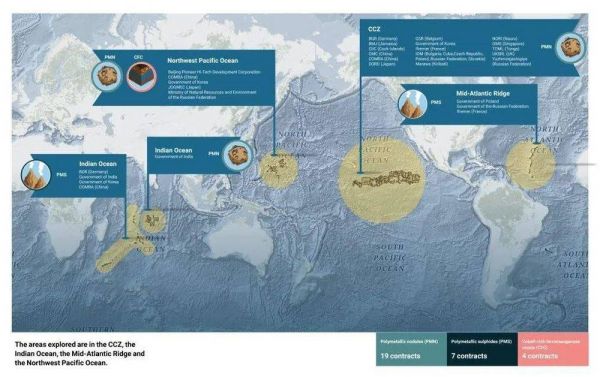 深海采矿勘探合同覆盖海域示意图 / 国际海底管理局,2023年