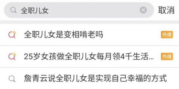 微博有关于全职儿女的讨论